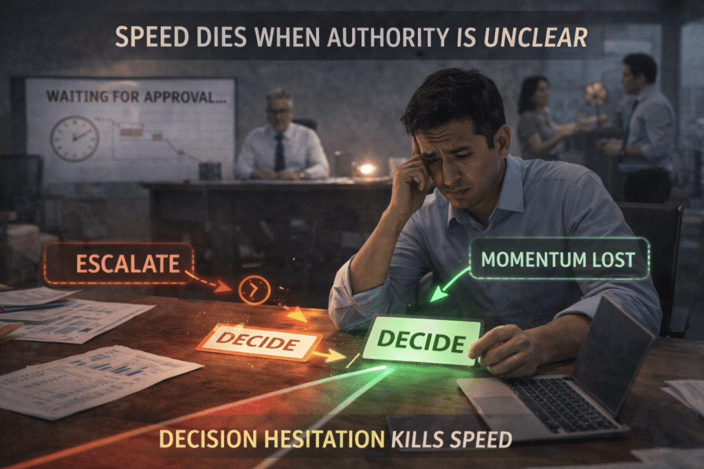 Because when authority is unclear, decisions travel. And every time a decision travels, execution slows.