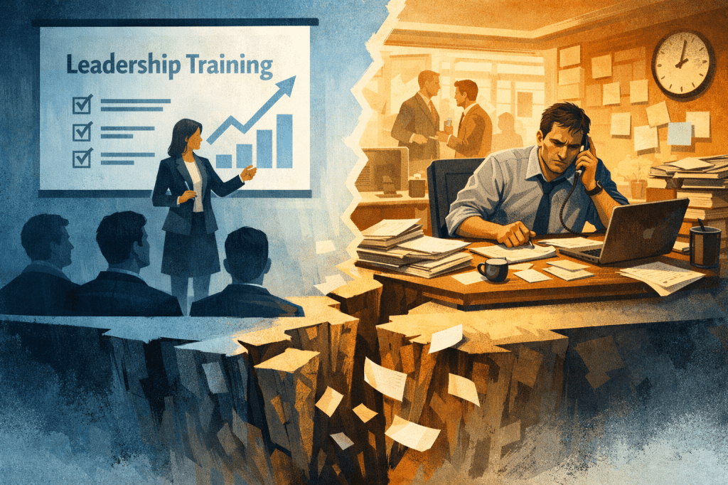 The same managers escalated simple decisions. The same communication issues showed up in meetings. The same execution gaps quietly slowed down projects. It was as if the training never happened—except now you also had a line item in your budget reminding you that it did.